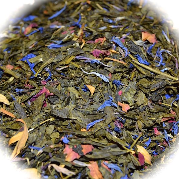 Ingredientes: té verde sencha, pétalos de flores, aroma