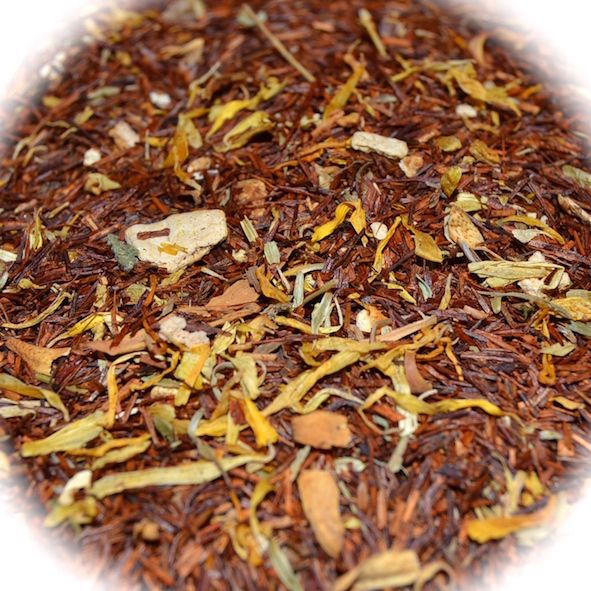Ingedientes: rooibos (79%), piña, flor de azahar, flor de caléndula, tomillo, naranja, limon, menta y aroma natural.